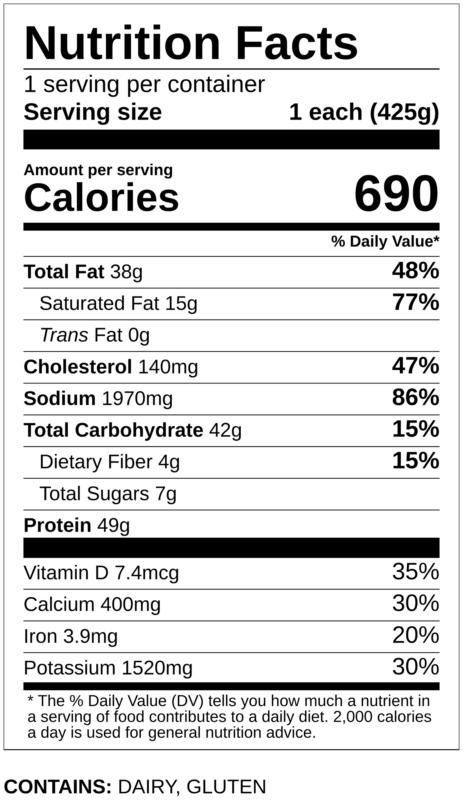 Creamy scalloped potatoes meet crispy bacon, sweet onions, and Brickhouse's signature fine garlic sausage. It's smoky, savoury, and unapologetically indulgent.