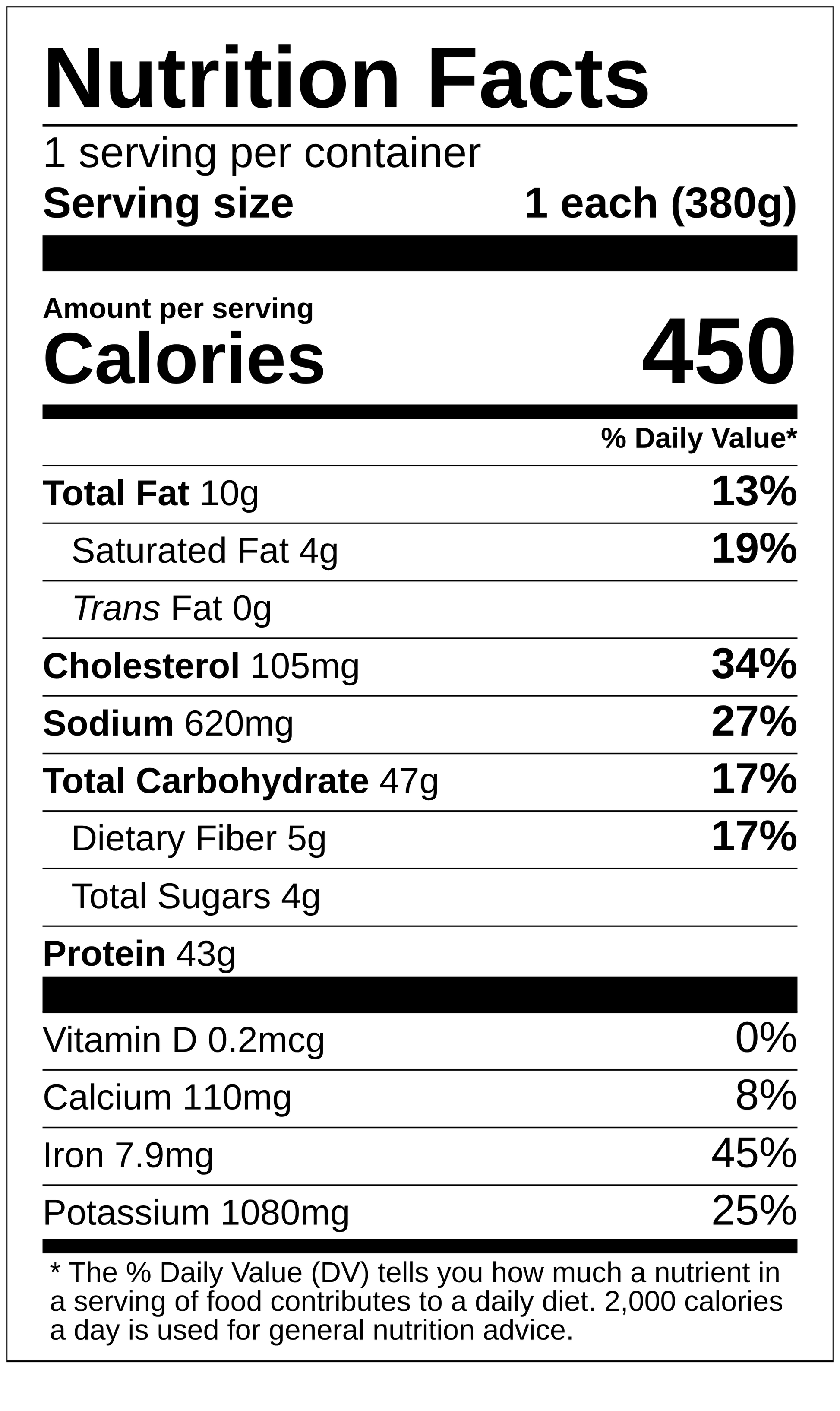 Nutritional values are based on consuming all portions of the meal,